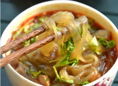 宽粉300g、猪油10g、盐5g、姜10g、红尖椒20g、生抽10ml、醋20ml、香油5ml、花椒油3ml、油辣椒50g、肉汤300ml、香菜20g、蒜10g