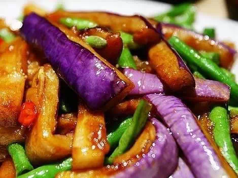 做法:1. 茄子清洗干净后滚刀切成小块;在容器里放入水后挤上柠檬汁,或者加入几勺白醋;放入切好的茄子浸泡十分钟左右;五花肉清洗后切成细丁;
