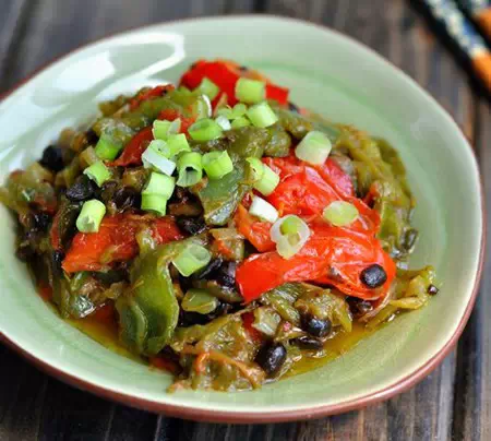 4)调入适量精盐,细火把辣椒炒软表皮起泡即可。