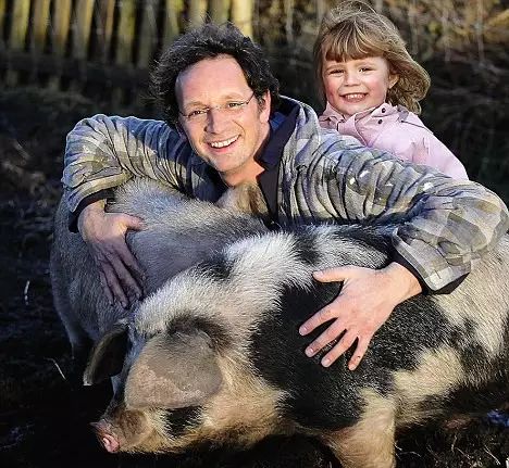 上图中开怀大笑的,是Rod Wood先生和他四岁的女儿Ellie。这个家庭在2008年的全球金融危机中步入困境,Wood事业受挫,妻子降薪,家庭拮据导致生活一塌糊涂,而看了Monty Don的节目后,这个家庭离开喧嚣的伦敦,同样到一处乡间种菜养猪,过上了幸福的生活。