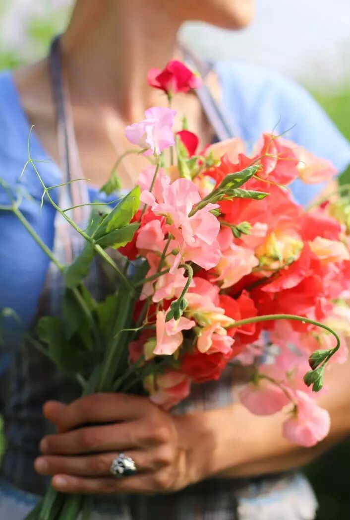 流水潺潺的小溪,暖暖的苏打水,美味的焦糖,沁人心脾的花香。尤其是祖母花园中的豌豆花让Erin Benzakein分外着迷,香甜的味道弥漫了她的童年。