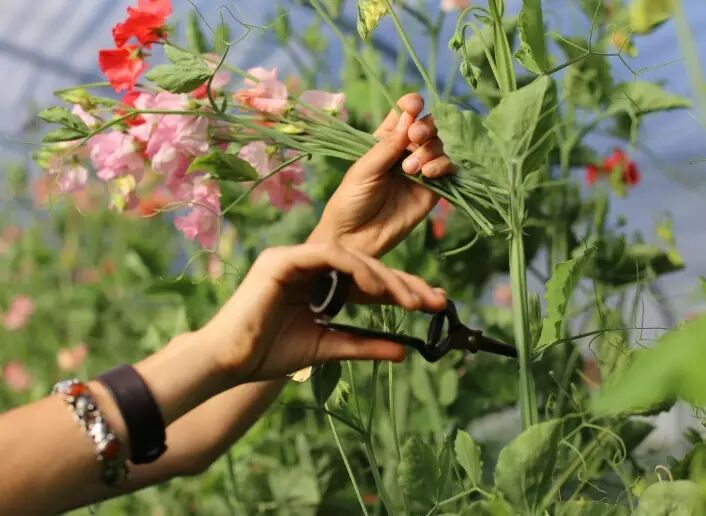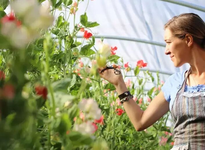 这座农场里有很多花,而为纪念祖母种下的两行甜豌豆长势最好,每每闻到醉人的花香,Erin Benzakein一下子就会穿越到小时候,身后的屋子里,慈爱的祖母似乎还在那里等着她采花而归。