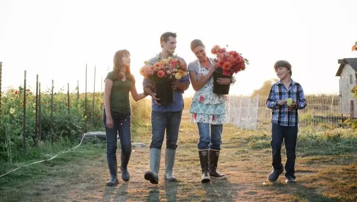 今年35岁的Erin Benzakein,是一个有故事的美国家庭妇女。她和丈夫育有一儿一女,一家人在一处山谷中开辟了鲜花农场,打理花草、养鸡种菜,销售鲜花并开设花艺课程,时光静好,岁月芬芳。