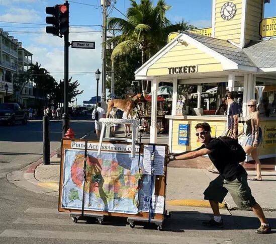 2010年,当时生活在纽约的度堂放弃了工作,想要开始全球旅行。 他在eBay上买了一辆卡车做交通工具,运他的钢琴和狗狗。他希望能够和全世界的人分享他的美妙音乐。令人震颤的是,他的钢琴重量是500磅,约226.8kg。