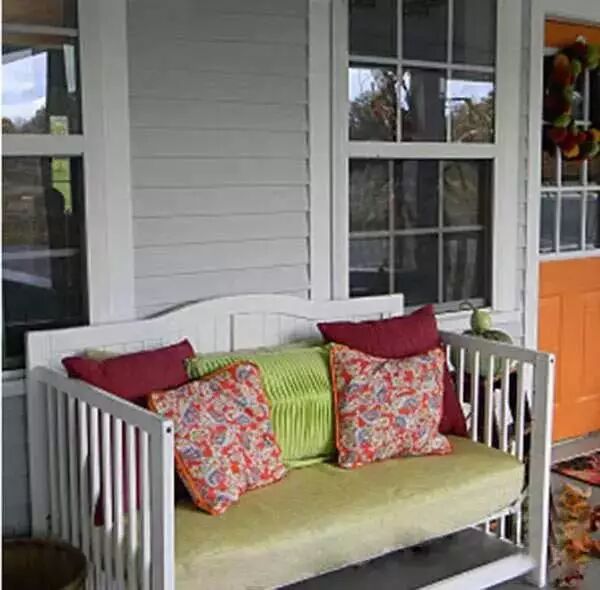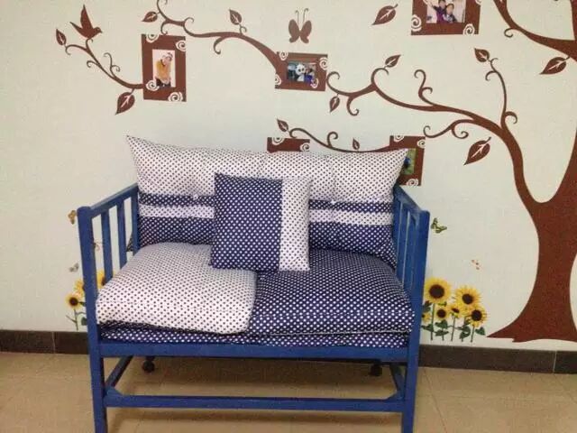 ▼将婴儿床的一旁护栏拆除,放上柔软舒适的抱枕,一款温馨可爱的沙发就这么诞生了。