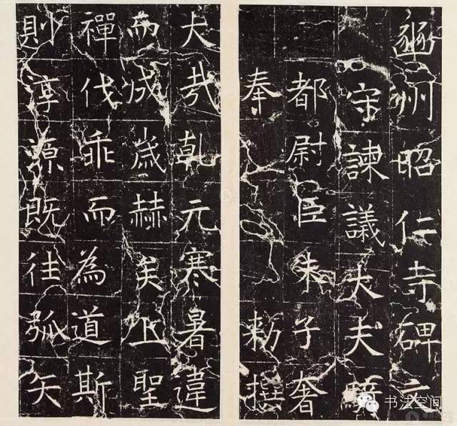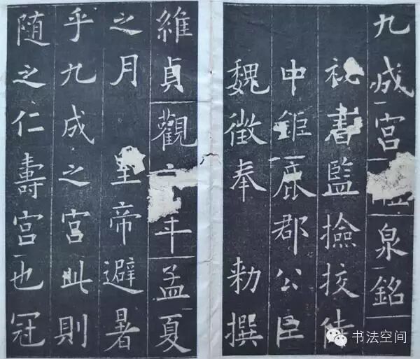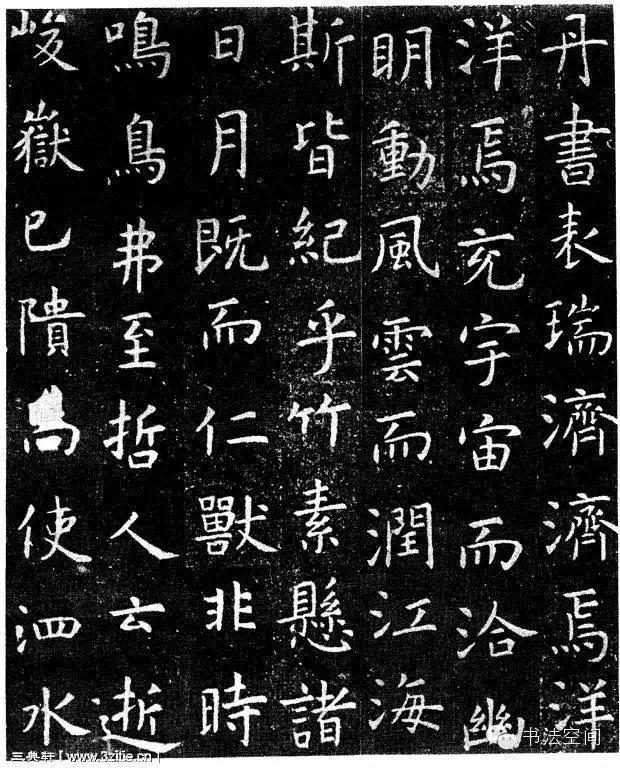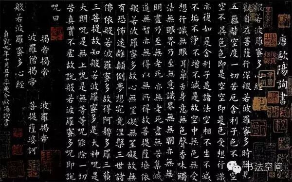 欧字的总的特征,在唐代各家楷书里最为显著。结体严正险劲,而有时往往奇峰突起,出入意料。欧字通过匠心经营,适当安排,使碑字整体端庄而有活泼气像。欧字的瘦,不像病夫那样憔悴,而是像有武功的人那样,外表干枯,内里充实,欧体点画方面的特征尤多,而且富有变化。我们来欣赏:
