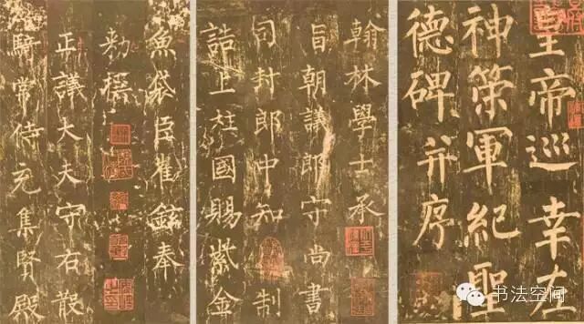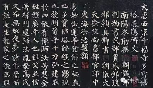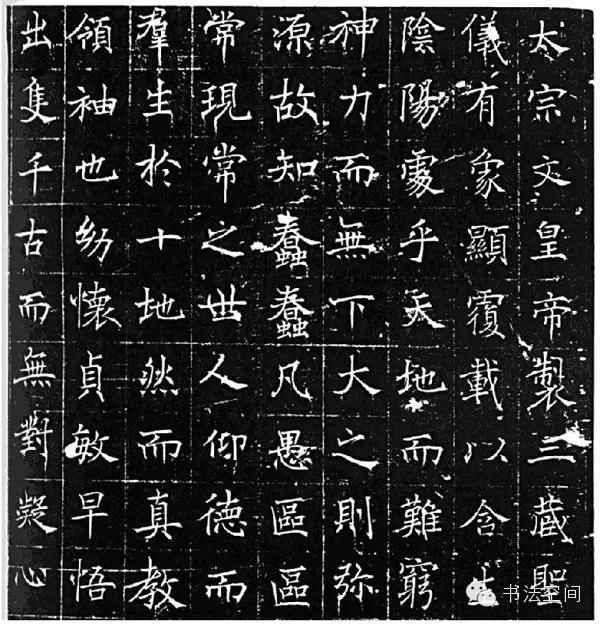 褚遂良在初唐时期是虞、欧之后晚起的书法家,他曾请益于虞、欧两位,得到他们的指导启发,对他影响很大,所以褚字兼有方圆之长。他所书碑版,流传于世的,如《倪宽赞》《雁塔圣教序》等几种。