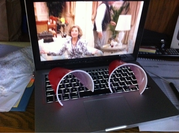 8、笔记本立体声不够震撼?找两个纸杯裁成两半这样放好,享受心理作用程度的震撼立体声吧(拢音),别忘了把杯底去了。