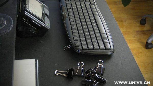 23、键盘下面的支架坏了?用长尾夹代替。