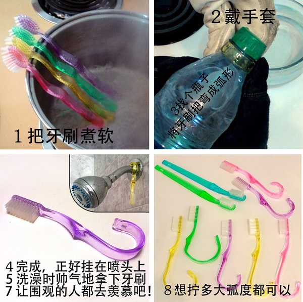 12、牙刷放在杯子里太主流?进淋浴想刷牙又不想走出来弄湿地?那就弄弯它吧。