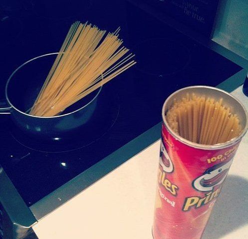 36、用薯片罐存放面条
