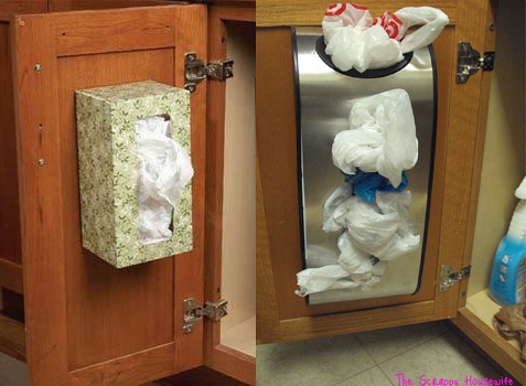 4、别浪费空间,在碗柜门上粘个抽纸盒吧。