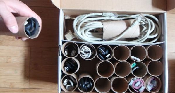 40、很多数据线?用卫生卷纸芯和鞋盒分类放好。
