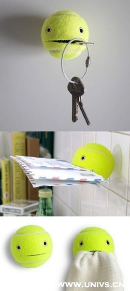 30、旧网球拉个口,钉在墙上。