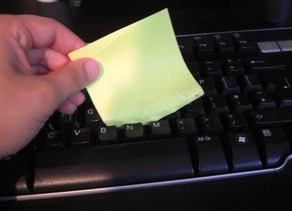24、键盘里全是毛发、瓜子皮、方便面渣?用便签纸粘的那头清洁。