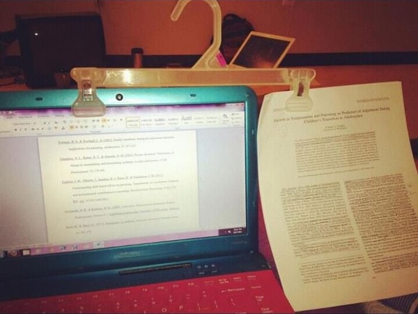 11、把纸打成电子版时候搁哪儿都不舒服?没关系,像这样夹在屏幕上吧。