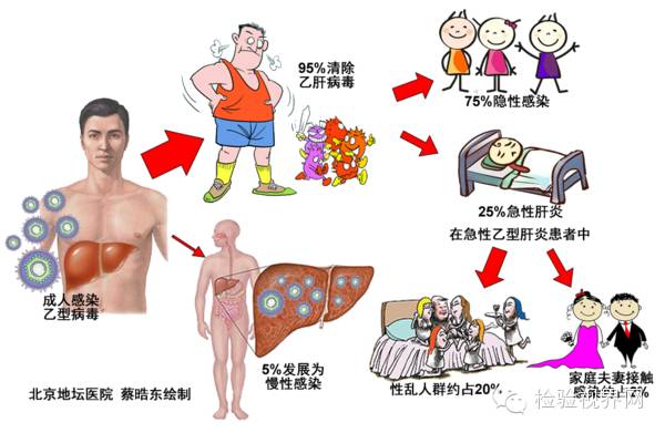我国一项调查显示,夫妻双方一方是乙肝病毒感染者,另一方HBsAg阴性,3年后未接种乙肝疫苗者仅有4.54%的人成为慢性乙肝病毒感染者(HBsAg阳性),而接种了乙肝疫苗的人无1例HBsAg阳性。我国昆明的一项1598例慢性乙肝病毒感染者未接种乙肝疫苗的配偶调查显示,74.41%曾被乙肝病毒感染,但只有5.83%的配偶HBsAg阳性,其余被感染的配偶均为感染后病毒被清除的表现(HBsAg阴性,抗HBs阳性或/和抗HBe及抗HBc阳性)。
