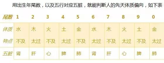 先天的体质可以从出生年尾数来看(注意:以农历出生年份为准)。