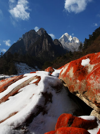 川西轻灵的环境孕育了不少散落的神秘精灵——红石。红石是一种散落在山间尤其是溪水流经之处的石头,因其表面附着着一层红色的藻类,被称为红石。红石对生长环境的要求极为苛刻,空气洁净度、湿度、水的清洁度都会影响它们的生长。雅家埂一带低碳富氧的空气、冰山融雪的溪流、原始森林的植被,为红石的生长繁衍提供了最理想的环境。
