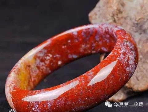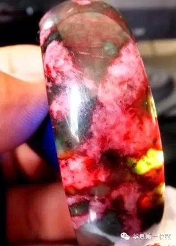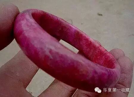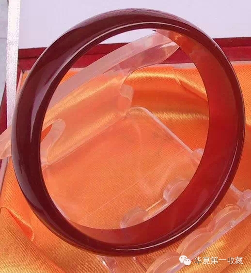 这是山东(潍坊)产玛瑙手镯,乍看与挑花玉很相似。但仔细看它是有条带结构的。