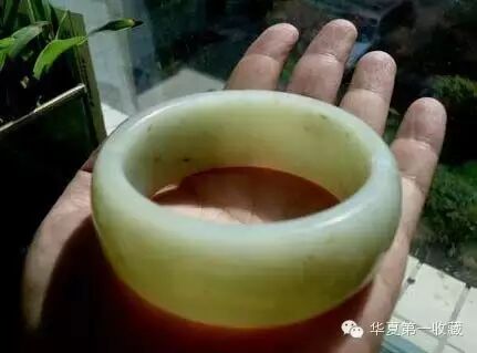 这是和田玉大家族中的辽宁岫岩黄白老玉手镯,价格昂贵。