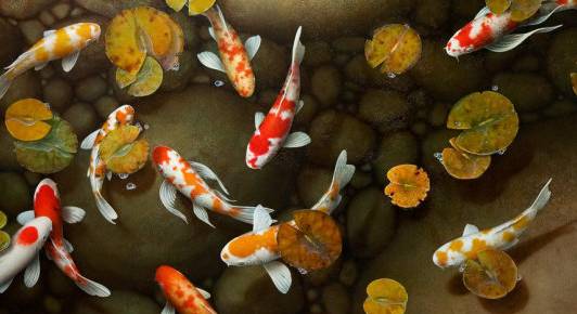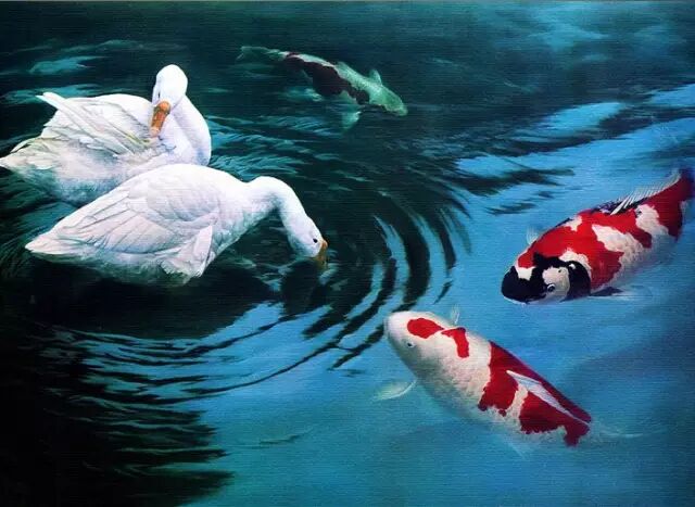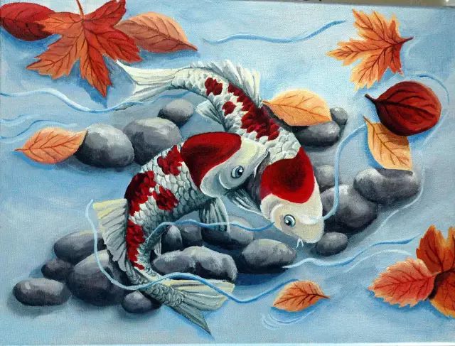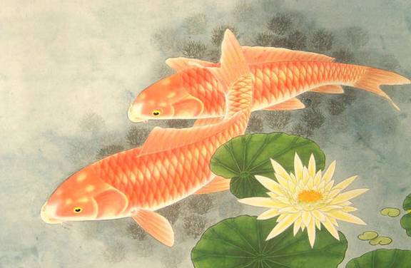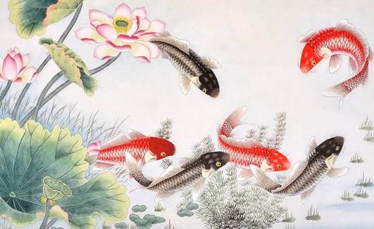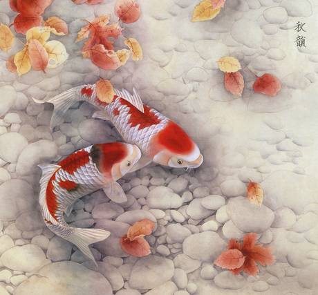 独具风姿的锦鲤也深得文人雅士的喜爱。以锦鲤为题材的艺术作品也是让人心旷神怡。