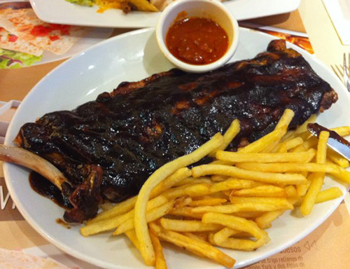1、以0.75茶匙酱油、0.75茶匙米醋、4粒蒜头、4颗青椒、1个奇异果泥腌渍1.4公斤牛小排3小时;