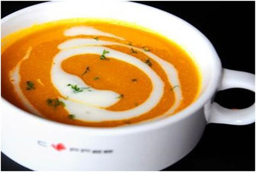 沸3茶匙牛肉高汤、1.5茶匙水、1茶匙番茄、900克切丁南瓜肉、0.5个洋葱、8茶匙辣椒后,炖20分钟到柔软。