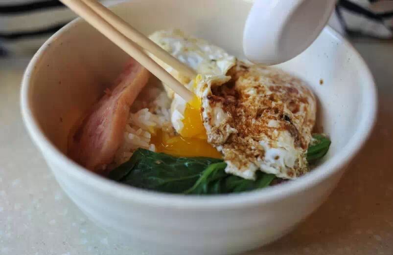 1.第一步,米饭的准备工作。将煮好的米饭,用筷子打散,放冰箱冷藏室半小时后取出,加一小匙油后再放到冷藏室冷藏1小时左右待用。