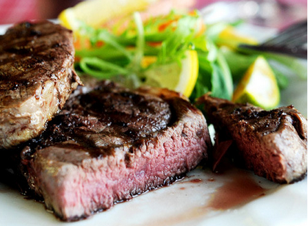 牛排 2块、胡萝卜 2根、柠檬 半个、鸡毛菜 1小把、橄榄油 2汤匙、海盐 适量、黑胡椒 1/2茶匙