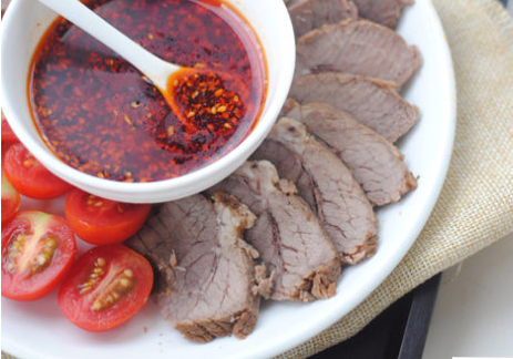 牛肉 适量、辣椒油 适量、食盐 适量、生抽 适量、老抽 适量、姜 适量、蒜 适量、八角 2个、花椒 适量、干辣椒 2个、茴香籽 适量、丁香 适量、桂皮 1片、香叶 2片、五香粉 适量、冰糖 适量