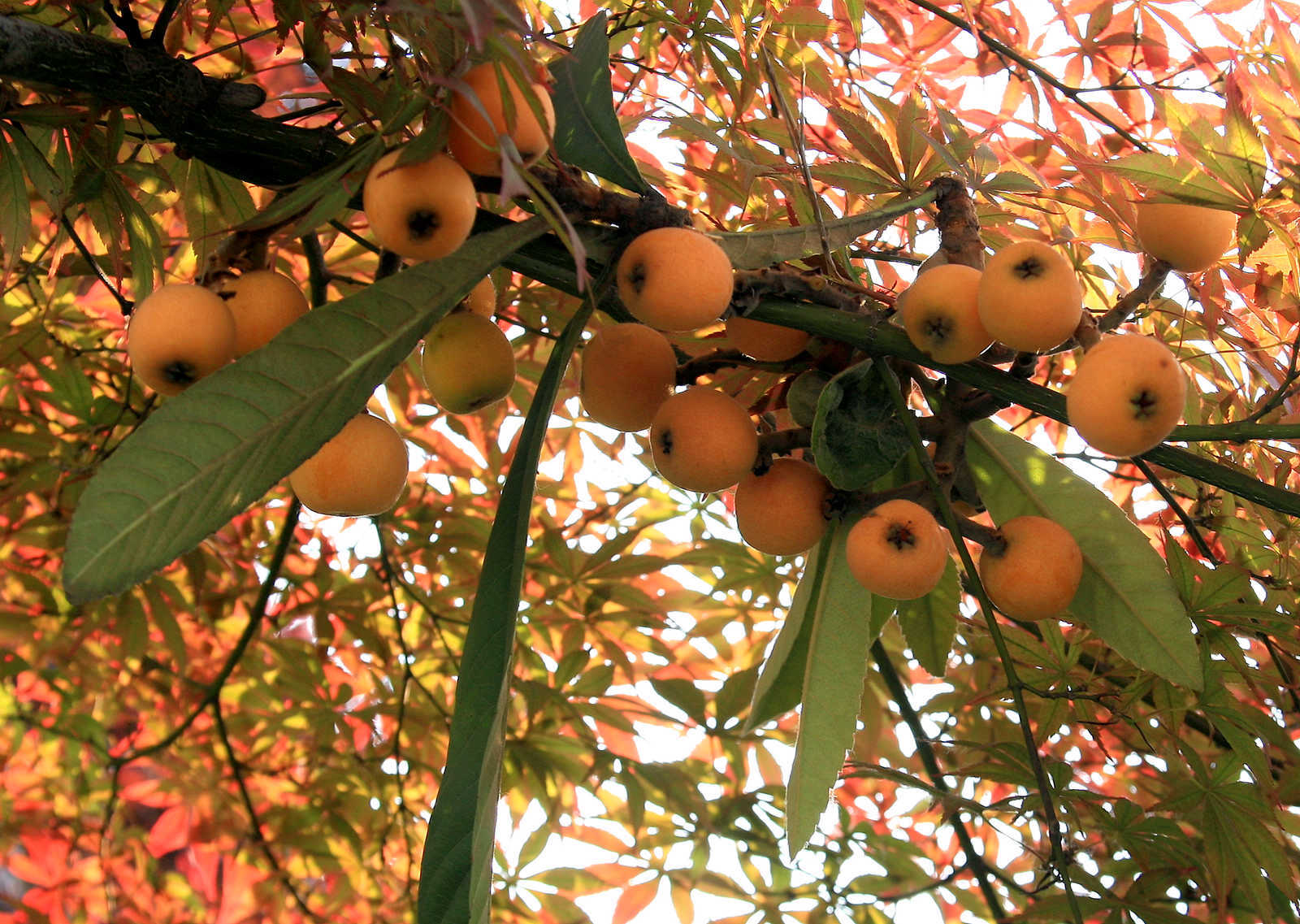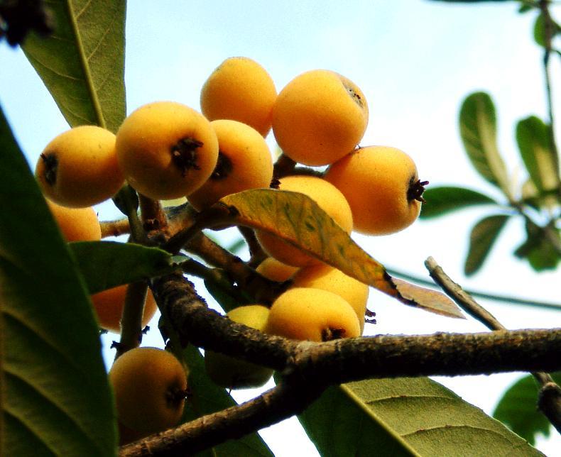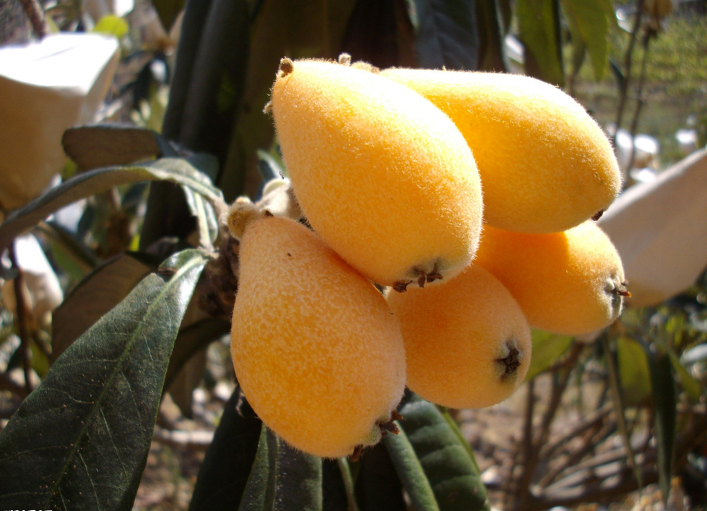 其叶形似琵琶,故名。盛冬开白花,至三四月成熟作(木求),生大如弹丸,熟时色如黄杏,微有毛,核大如芋栗,黄褐色常绿小乔木,高可达10米;小枝密生锈色或灰棕色绒毛。叶片革质,披针形、长倒卵形或长椭圆形,长10—30厘米,宽3—10厘米,顶端急尖或渐尖,基部楔形或渐狭成叶柄,边缘有琉锯齿,表面皱,背面及叶柄密生锈色绒毛。圆锥花序花多而紧密;花序梗、花柄、尊筒密生锈色绒毛;花白色,芳香,直径1.2—2厘米,花瓣内面有绒毛,基部有爪。梨果近球形或长圆形,黄色或桔黄色,外有锈色柔毛,后脱落,果实大小、形状因品种不同而异。花期10一12月,果期第二年5—6月。[1]