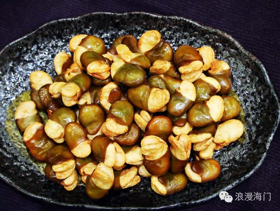 这是在传唱蚕豆的另一种做法。沙地人习惯把脱去一小半壳经菜籽油煎炸的蚕豆称作和尚豆。咬在嘴里香脆难挡,成为农家四季美食。