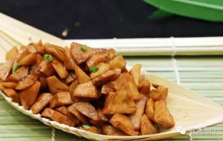 这是在赞香芋茶干的天然与美味。海门沙地的犟黄泥,给香芋成长铺设了独到的的温床。内心厚实的香芋切片,遇上浸透卤汁的茶干后擦出火花,味道上上佳。
