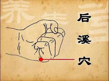 这一系列问题,都出于同一原因。现在,通过一个穴,也就可以全部解决,这个穴就是后溪穴。后溪是小肠经上的一个穴,把手握成拳,掌指关节后横纹的尽头就是该穴。这个穴是奇经八脉的交会穴,通督脉,能泻心火、壮阳气、调颈椎、利眼目、正脊柱。