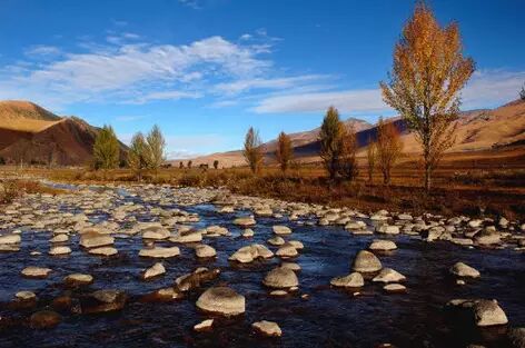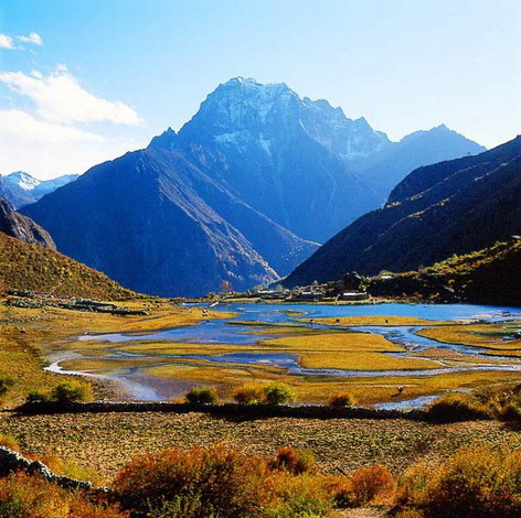 西藏的秋天是很有特色的。它的秋天不仅仅意味着单纯的金色,更像雨后初雾的彩虹:一道七色之光,清新而亮丽,遥远而神秘。
