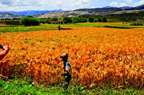 秋天的青稞呈现金色。青稞是藏族人民的主要粮食,生长在海拔4200~4500米的青藏高寒地区,是西藏四宝之首糌粑的主要原料。