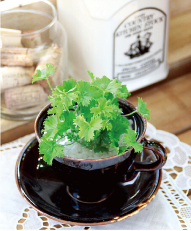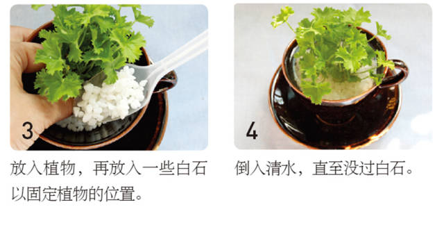 想必你家中也有那么几个弃之可惜、用之无趣的茶杯吧?现在就是它们派上用场的时候啦。像茶杯这样开口较大的容器非常适合水培植物。为了防止植物倾倒,最好放一些白石在杯底。记得杯中水量减少时要及时补充。