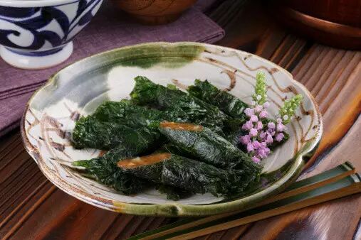 紫苏本身就可以做成日本料理天妇罗,在做炸鱼排时搭配上紫苏,味道会非常好;或者在炖菜、煮菜时加入少许紫苏叶,口感会非常奇妙(不喜欢这个味的也有);腌制泡菜时放入几片紫苏叶,可以消除泡菜的酸味并且香气持久。