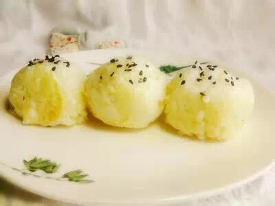 1、们好的米饭稍稍晾凉后揉成饭团(手上沾些水就不粘手了);