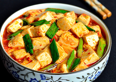 豆腐 500克、蒜苗 2根、蒜 3粒、郫县豆瓣酱 1.5汤匙、酱油 1汤匙、水淀粉 适量、食盐 1茶匙、色拉油 2/3汤匙