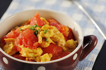 鸡蛋 3个、西红柿 2个、白糖 1茶匙、生抽 1/2汤匙、食盐 1/2茶匙、细香葱 1小段、植物油 4汤匙