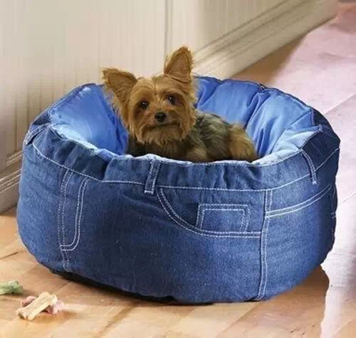 超级喜欢这个小狗窝,如果没有那么大的牛仔裤,就用两块牛仔布拼一拼。