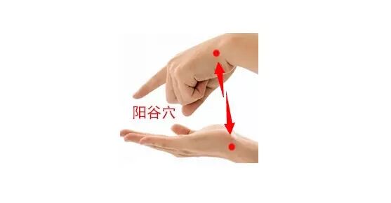 该穴位位于手腕尺侧,尺骨茎突与三角骨之间的凹陷处,即手掌侧面连接手腕横纹处,通常称之为“阳谷穴”。