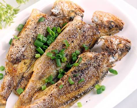 5、将鱼的两面煎至金黄,即可出锅装盘,撒上适量葱花。