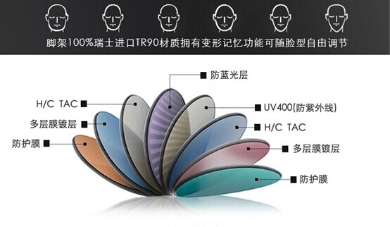 1、防辐射镜片表面镀有一层有色的防辐射膜层,膜层有蓝色、绿色、黄金色等。蓝绿色镀膜层属于普通抗辐射膜层,抗辐射效果根据国家检测能达到50%左右,高抗黄金膜层采用的是特殊氧化银元素,根据国家检测效果能达到90%。