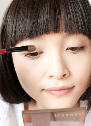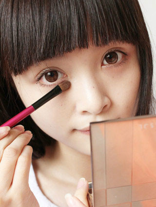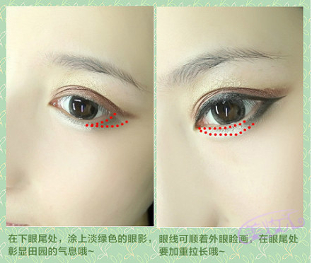 上眼皮用手上色即可 下眼睛要用小刷子哦 从眼尾往眼睛刷 逐渐减淡