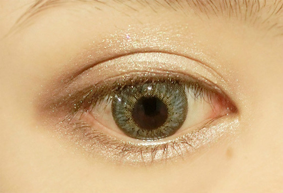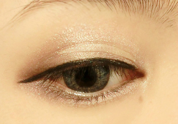 先用金棕色打底哦涂抹在眼球突起的位置 眼尾颜色重一些 从眼尾到眼角逐渐减淡