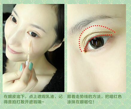 这边的bb霜和粉底液,也要给眼部打底哦,因为这样可以突出眼妆。