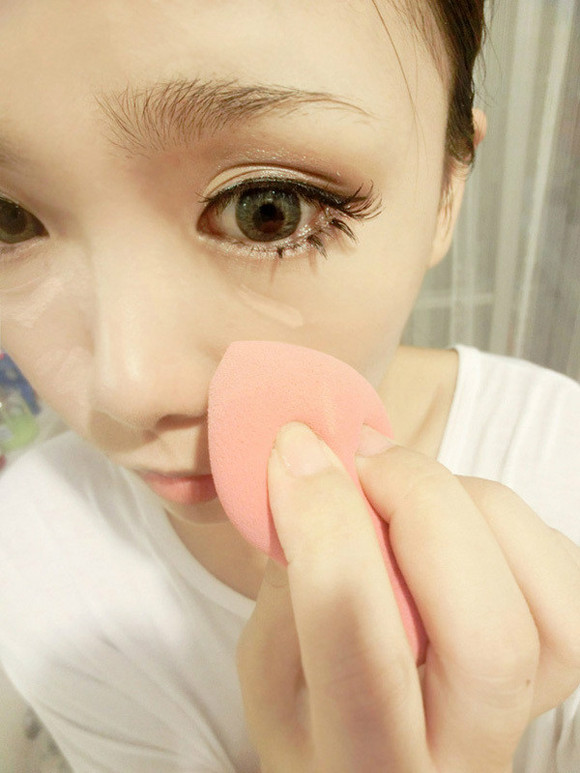 我不支持拿手抹抹抹几下就完事的妹子们哦。第一,虽然快,但是你会发现这样抹会导致妆容不服帖,甚至出现死白死白的现象。这也就算了,重点是第二点,这么抹很容易抹到毛孔里去的!掌力很可怕的……